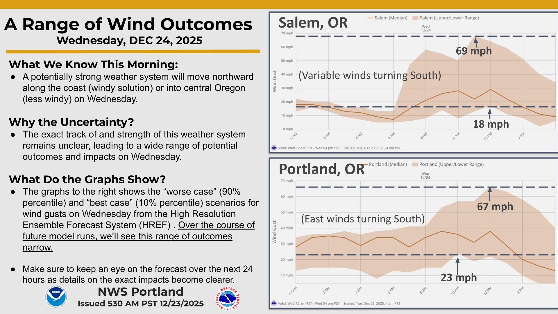 In my last update, I mentioned the potential for strong winds in the Cascades and over in central Oregon. It’s looking more likely that those strong winds could also move through the Willamette Valley. Please carefully read through these important highlights: