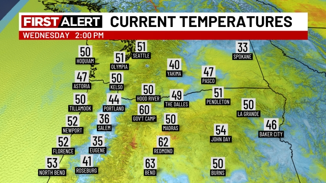 When is the last time you saw Government Camp on Mount Hood more than 20 degrees warmer than Salem? It’s a beautiful day up on the mountain! Santiam Pass is also very mild sitting at a balmy 63°.
