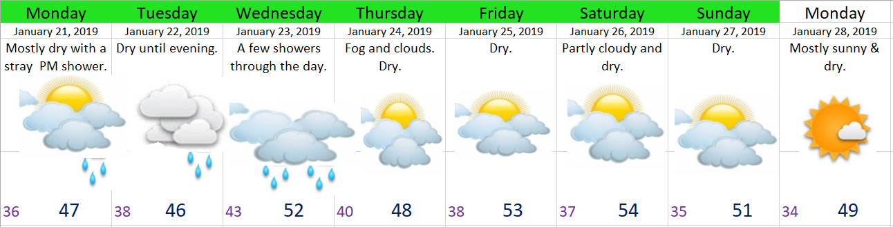 Tuesday: Dry start with light rain moving in from the north during the afternoon. Locations south of Corvallis & Albany should stay dry.