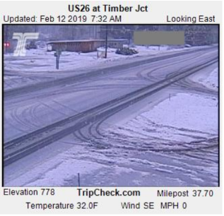 Some additional proof that snow fell to low elevations Tuesday morning. Here’s US 26 west of the Portland metro a little ways. You can see snow had no trouble here sticking down to 778′ and even a bit lower in surrounding areas. All in all a crazy day!