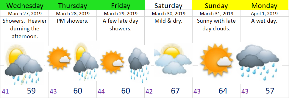 Saturday: Sunny and dry. Some late day showers should pop up over both the Coast Range and the Cascade Range, but for now I’m thinking the valley locations will stay dry.