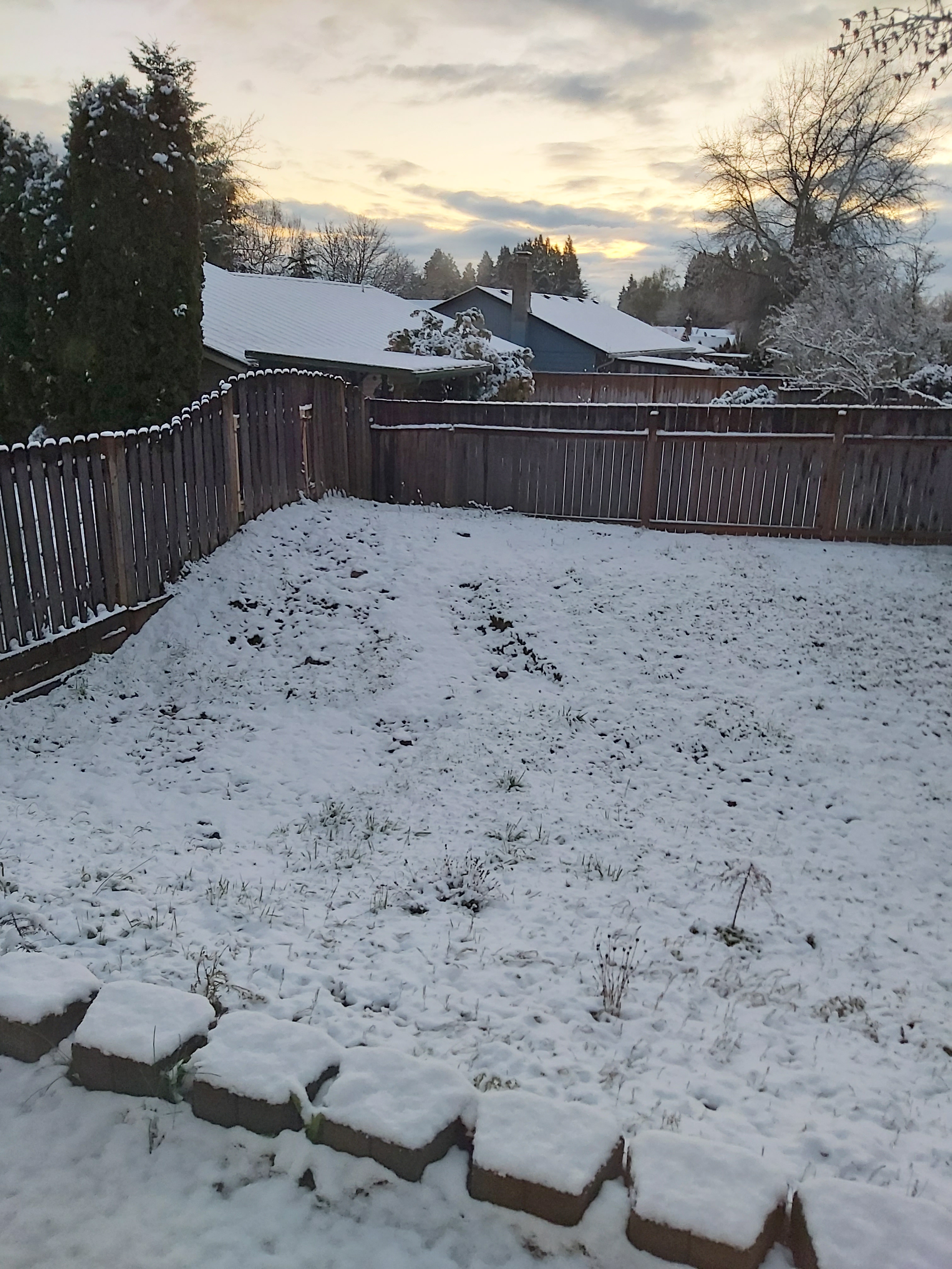 A quick Saturday afternoon update. It appears as though most everyone received at least a little bit of slush last night and some of us had a solid dusting of snow. Here’s what our backyard looked like in south Salem around 7:10 AM.