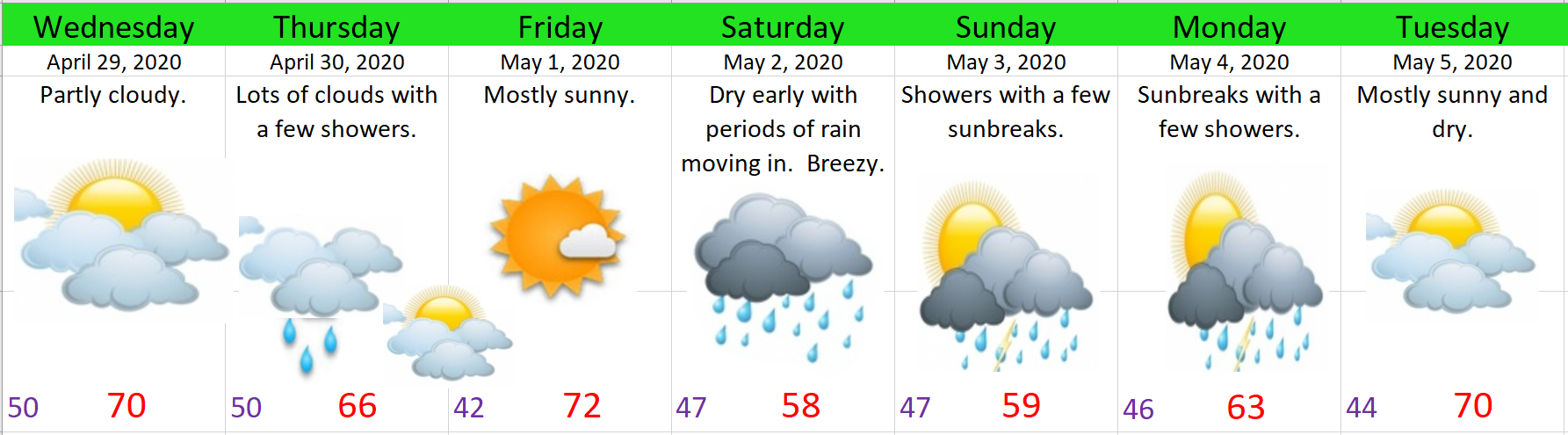 Sun: Showers and sunbreaks. Could have some heavier showers/thundershowers during the PM hours.