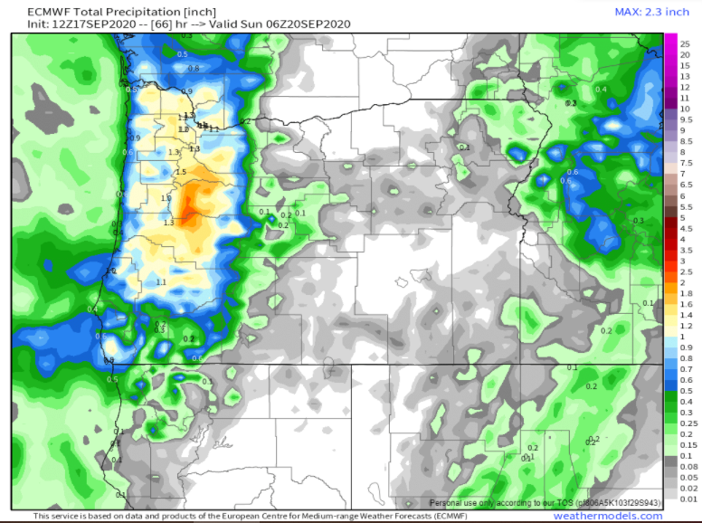 Today we stay dry until this evening when thunderstorms and some fairly heavy rain showers finally move in across all parts of the Willamette Valley. My best guess is showers and storms arrive between 7 and 9pm. It could be quite the lightning show for some of you tonight. Thankfully these storms will bring plenty of heavy rain with them, so lightning shouldn’t pose too much of a threat in term of starting new fires. Strong gusty winds are also possible with these storms.