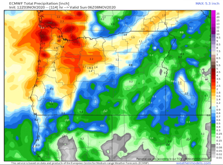 We finally had some rain today after a very dry October. Looking ahead we have a bit of weather action coming up this week to cover including some mountain snow.