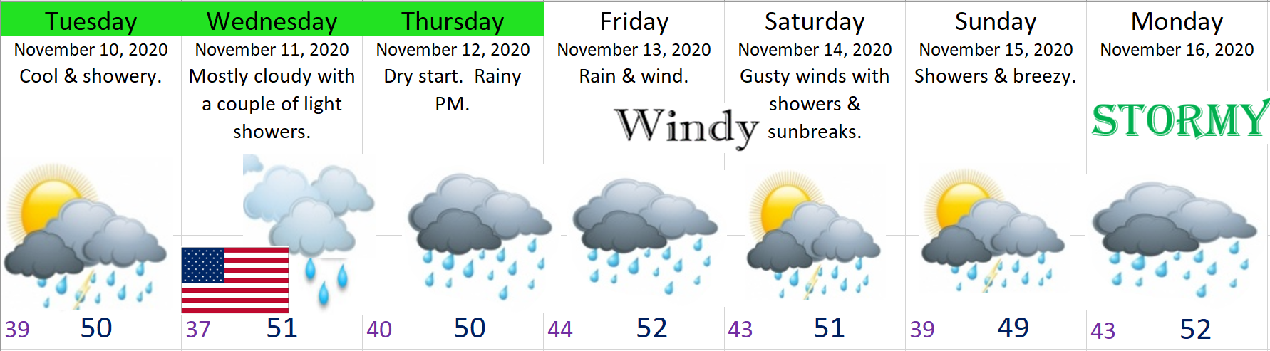 2.) Watching Friday/Saturday for the development of a powerful wind & rain storm. Keep both eyes open for updates as this system has the potential to bring some very stormy weather to our region.