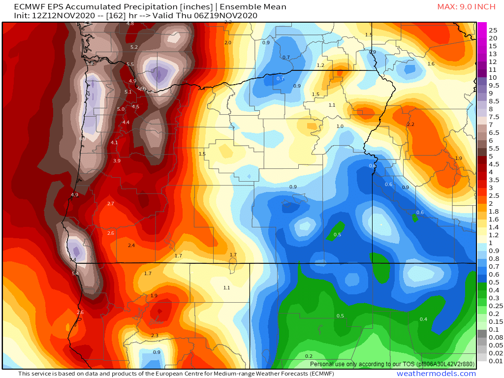 5.) Over 4 inches of rain are forecasted by next Thursday morning. Even if this is overdoing the rainfall by an inch we still have an extremely wet stretch of days ahead.