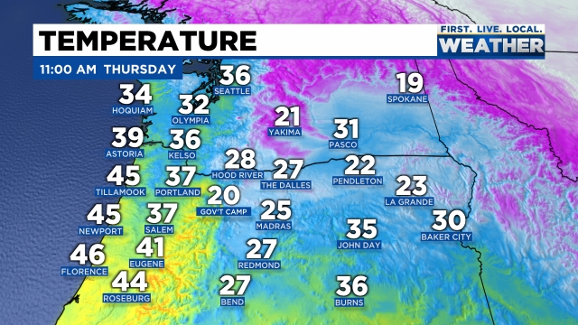 Either way Salem should stay close to or below freezing tonight through Saturday morning/early afternoon. This time of year it’s possible roads could be okay to drive on during the peak daytime hours on Friday if precip lets up and if we get a break in the clouds, but don’t bank on that. Drive as if they are still icy, stay safe, and plan on roads being a mess beginning late tonight through Saturday morning. At some point Saturday afternoon we should warm up above freezing and begin the melting process here in Salem. Portland will take longer and may not thaw out until Sunday afternoon.