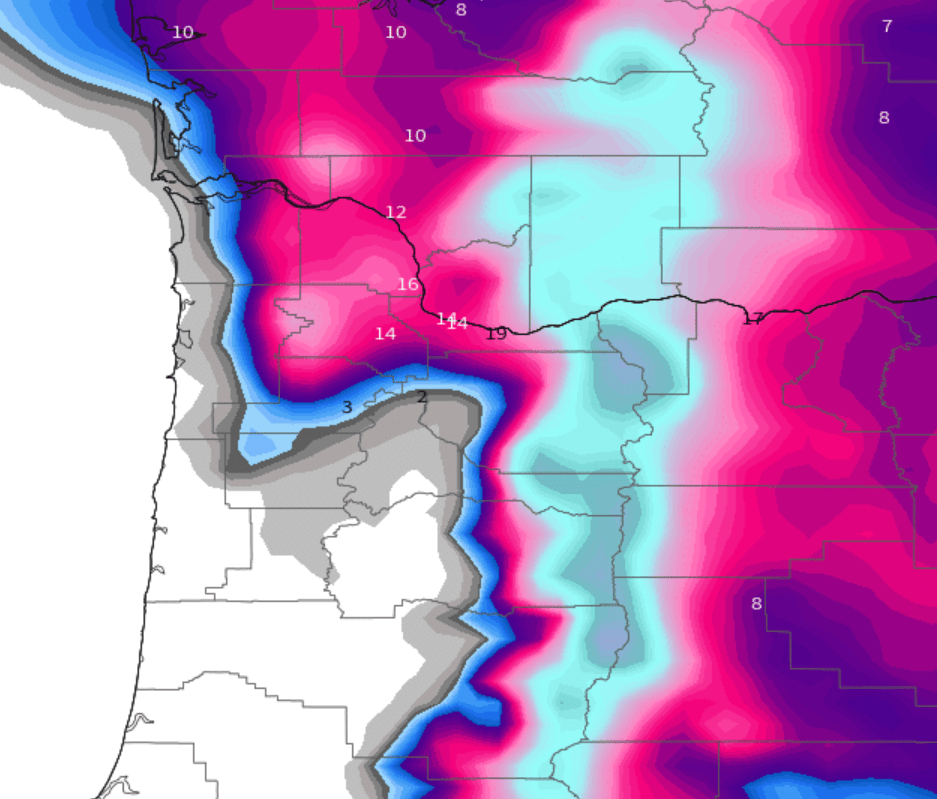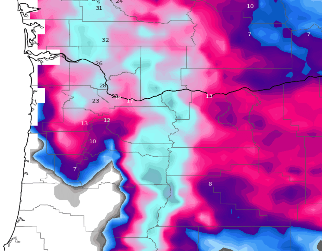 The greater Portland metro area: All of Clackamas, Washington, and Multnomah counties, as well as parts of Yamhill County are looking at what will probably be a major top tier snowstorm. Locations further south like Wilsonville and Newberg may only pick up 2 to 6 inches of snow, while cities both close to Portland and cities north and east of Portland could easily see – and I’m not kidding – well over a foot of snow between now and Saturday afternoon! Plan on Portland being an absolute mess through Sunday, perhaps even into Monday with Portland metro roads freezing up and turning snowy before the PM commute this afternoon.