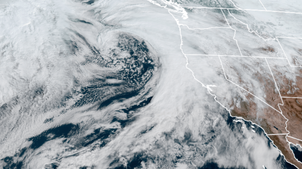 As you can see there’s a lot of very cold air east of the Cascades which is blasting through the gorge straight into the northern Willamette Valley. Next take a look at the satellite view of the storm rolling in. It’s a beast of a storm!!