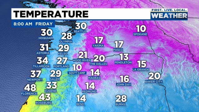 Portland is still on track for a major snowstorm later today through Saturday morning. I’m thinking 6 to 14 inches up there depending on location. A crazy big snowstorm for them!