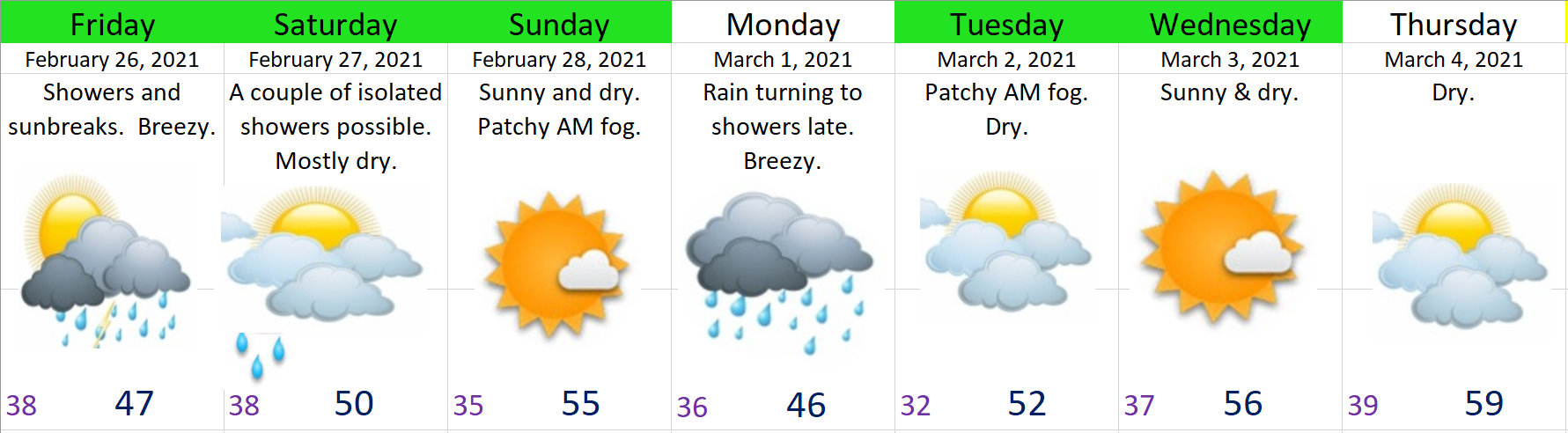 February 2021 is coming to a close and March is just around the corner. Here’s how the next 7 days are looking: