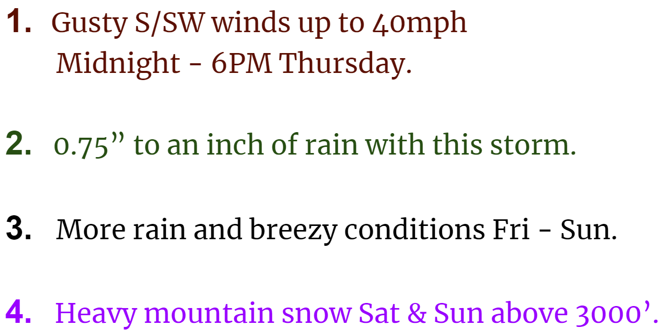 Tuesday: More rain and wind arrives and will likely last through Wed also.