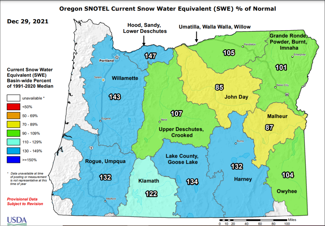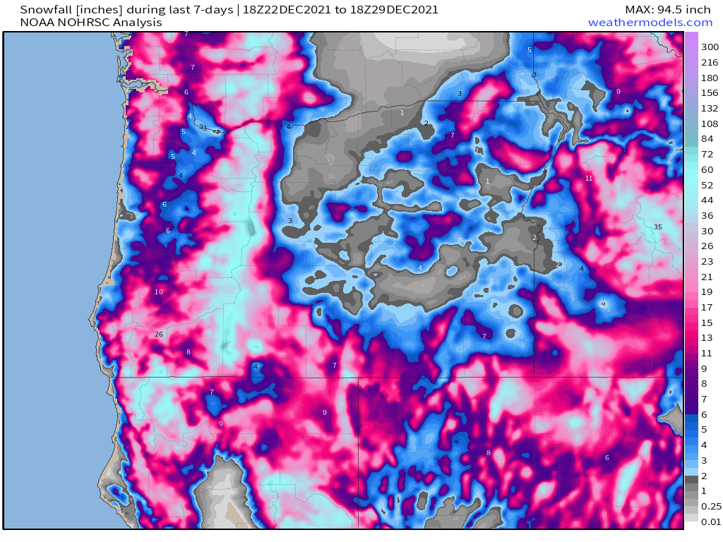 You can see the swath of purple to the south and west of Salem indicating totals over 6 inches. Tons of snow up in the Coast and Cascade Ranges too! Remember when I posted this snowpack map from December 6th?