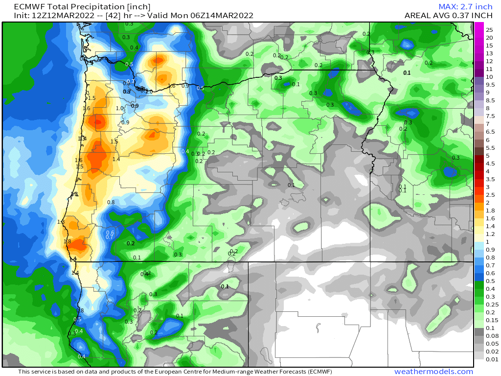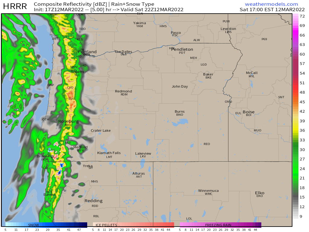 Notice totals over an inch around Corvallis and of course along the coast. Again, things will change QUICKLY here in the next few hours as we plung back into a very stormy pattern.