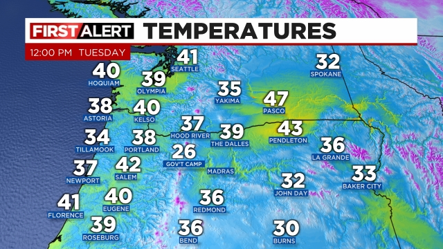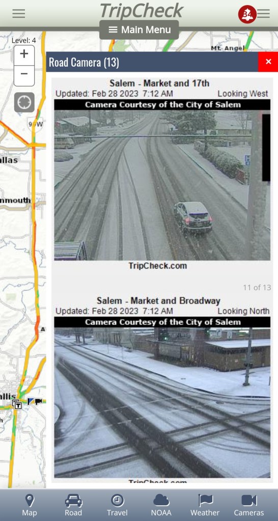 The rest of today and tonight: Snow showers will pick up this afternoon and early evening. Anyone could see another coating of snow on all surfaces at all elevations (even the valley floor) with this final band of enhanced snow showers. Locations on the east side of the valley like Stayton, Sublimity, Turner etc. stand the highest chance of seeing a fresh dusting of snow before we dry out. Lows tonight are headed for the lower 20s which means any location with snow or slush on the roads still will freeze solid.