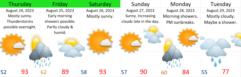 Sat & Sun: Very warm, mostly sunny, and dry days. Thunderstorms up in the Cascades each afternoon/evening.