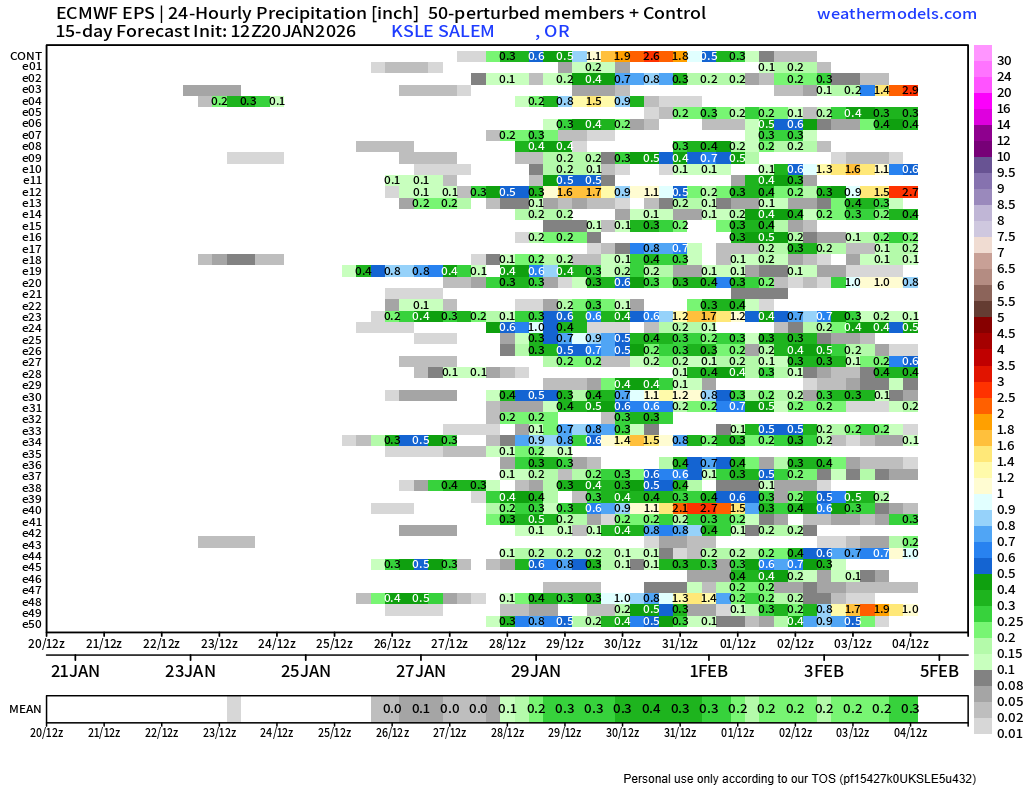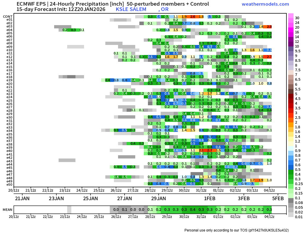 You can see the dramatic increase in members showing rainfall around the 28th and 29th. Let’s hope those don’t dry out, and let’s hope they end up being cooler systems for some mountain snow.