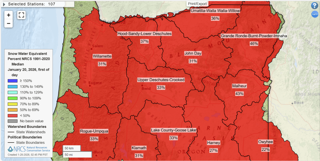 Well below average across the entire state. The drought monitor on the other hand does not look nearly as bad right now, and that is largely due to the big rainstorms we saw back in December.