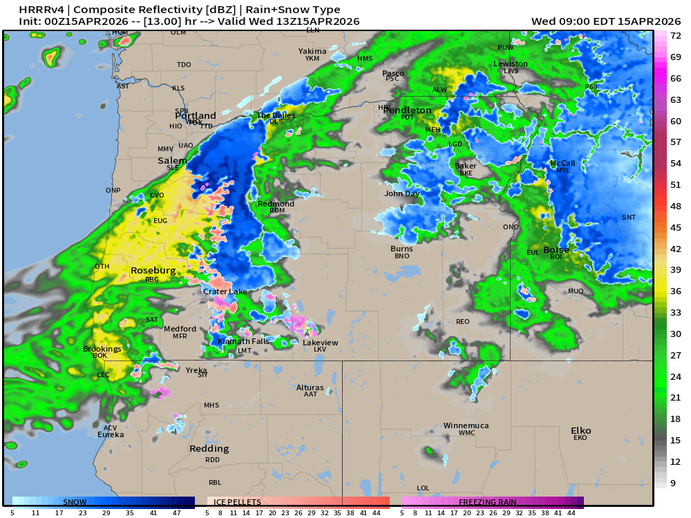 This image for 7pm shows lots of heavy showers roaming around the mid valley, and gives us a decent idea of what the afternoon and evening will look like. It also shows large gaps between the showers indicating nice sunbreaks at times. Again, plan on rapid changes throughout the day.