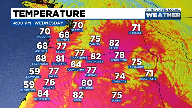3.) Plan on both Friday and Saturday being totally dry, but keep an eye to the sky during the late afternoon and evening hours both days as there will still be the slightest chance for a late day shower. More so close to the Coast Range and Cascade Range.