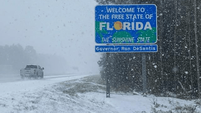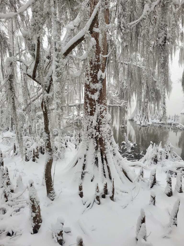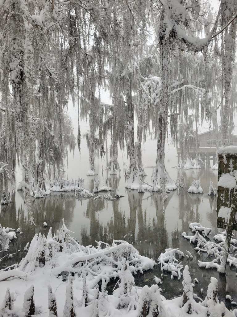 As you all know by now, the deep south had an extremely rare and historic snowstorm this past week. Actual blizzard conditions where observed in many locations from Louisiana to Florida. These photos of the snow covered and frozen bayou and blizzard like conditions along the freeway heading into Florida are just amazing and almost unbelievable.