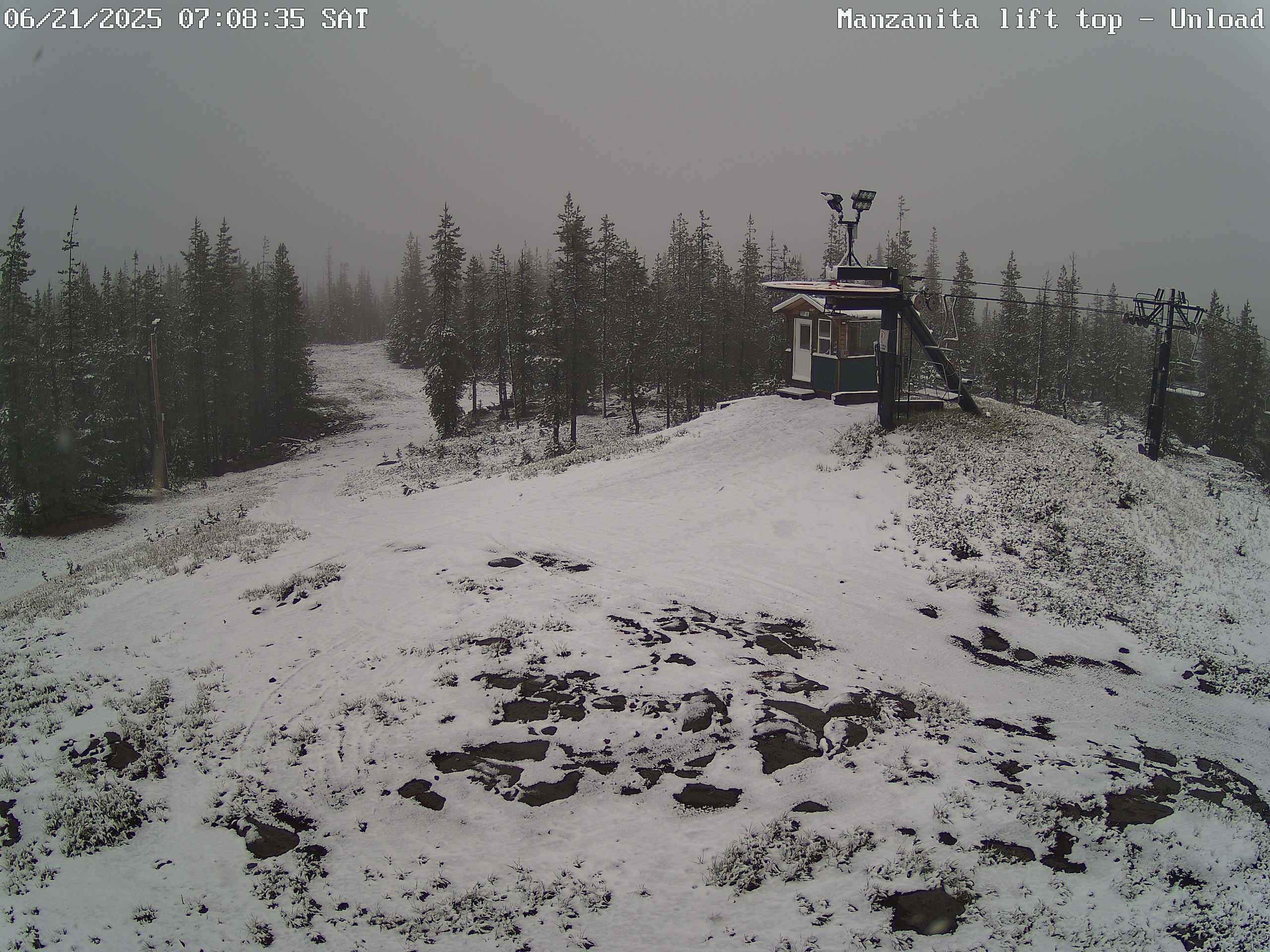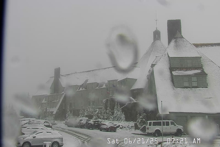 Snowfall also made it’s way to the Oregon Cascades. These two images show snowfall on Hoodoo and up at Timberline Saturday morning. Fun to see snow falling up there on the first full day of summer!