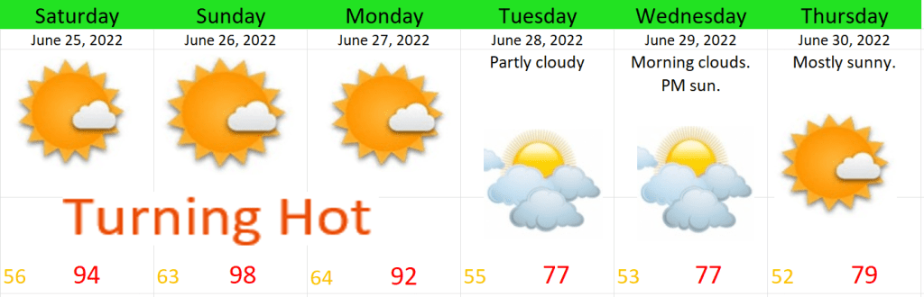 So far summer 2022 has started off much slower than last summer, but we are finally going to see things change (briefly) as a dome of hot air builds up towards us from the desert southwest. You can see the dome of heat is pretty much right over the Pacific Northwest by Sunday. The map below essentially shows temperature anomalies up around 18 thousand feet in the atmosphere.