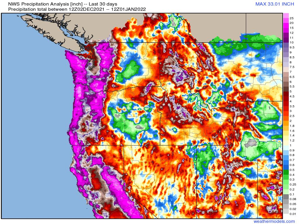 As promised, this week has been very winter like with lots of rain, chilly temperatures, and at times, gusty winds. Below is a county map of Oregon showing total rainfall over the past 7 days. Most of the Willamette Valley has picked up around 3 inches of rain since last Saturday!