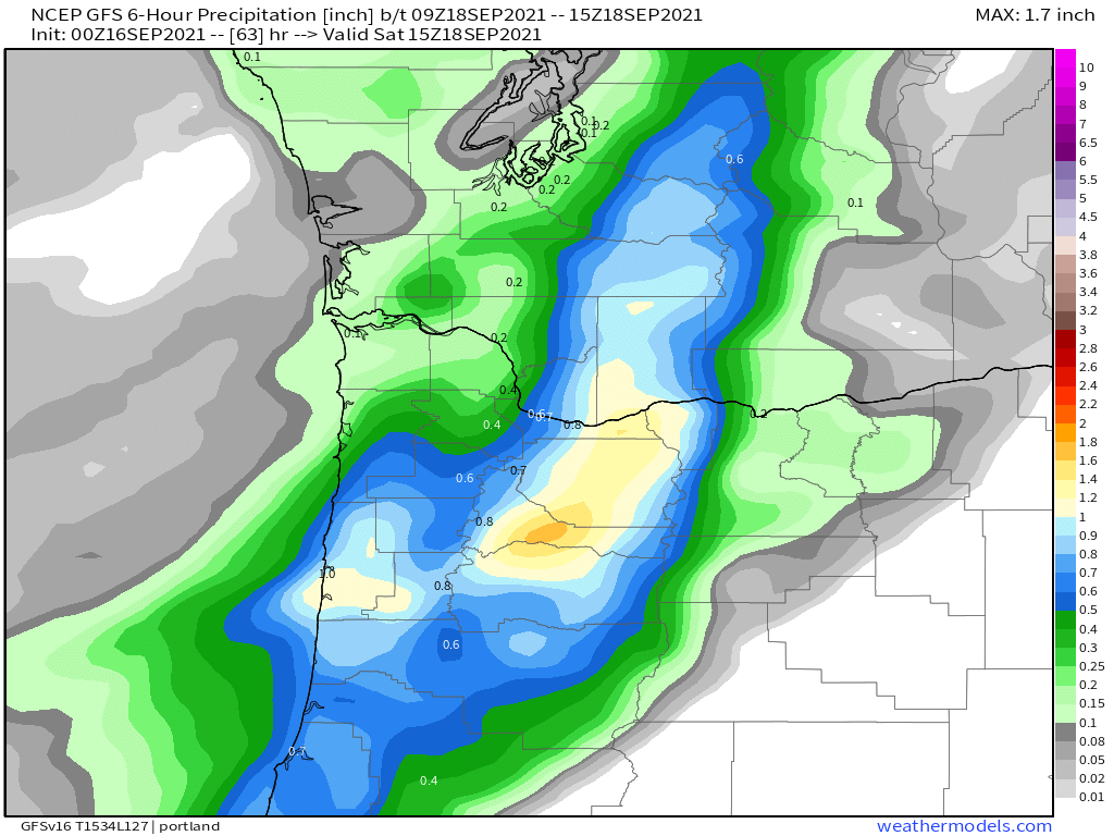 This map shows Salem picking up .8″ of rain in only 6 hours early Saturday morning with more as we go through the remainder of the day.