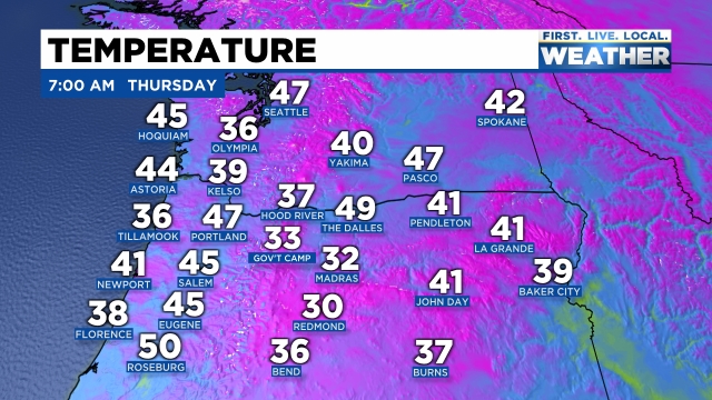 So yes, I’m back and it’s good to be returning to the swing of things. Looking ahead it’s very clear to me that summer is over. Sure, we will still have plenty of 70 degree days and maybe even a few more 80 degree days, but have you noticed the chillier nighttime lows? The heat of the day doesn’t last real long this time of year. Speaking of cool nighttime lows, the coolest temps we have seen since early June are occurring this morning with lots of low to mid 40s. Salem was at 45° as of AM. In fact check out all of the chilly temps this morning across the region!
