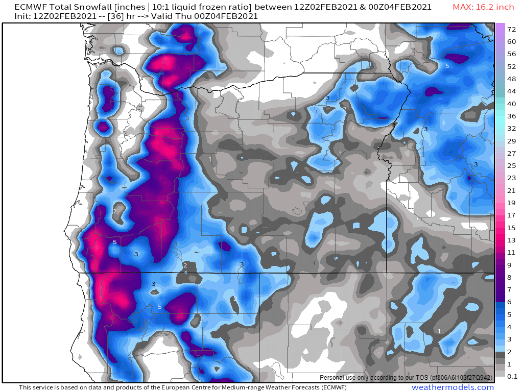 Portland is still on track for a major snowstorm later today through Saturday morning. I’m thinking 6 to 14 inches up there depending on location. A crazy big snowstorm for them!