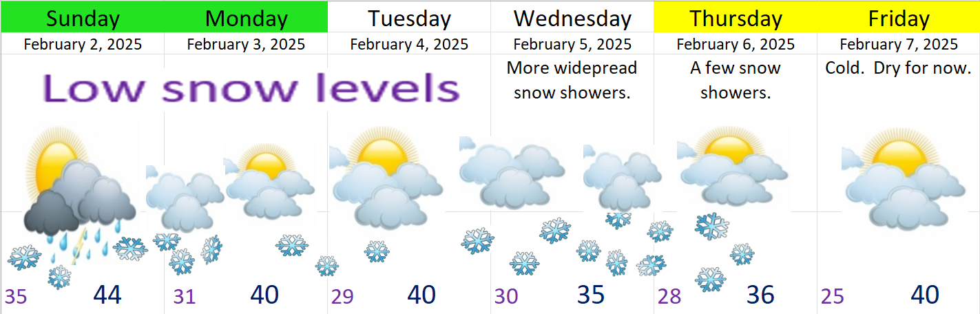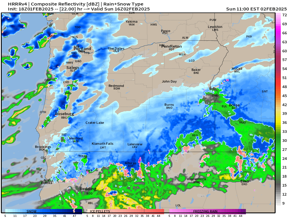 Wild weather will be on tap during this time frame. Heavy downpours, strong gusty winds, and even thunderstorms are possible during Monday afternoon. Dynamics are in place which could lead to some strong thunderstorms -something which is pretty rare for our region. This estimated radar image for 4pm Monday afternoon shows an intense line of showers and storms rolling across the valley. These storms would bring very heavy rain, gusty winds, and of course the possibility for lightning and thunder.