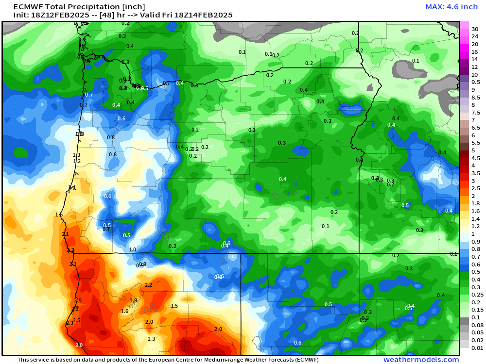 I still do not expect the Willamette River to flood. It will of course rise a lot, and I could see River Road heading out towards Independence closing (maybe), but there is just no snowpack to melt, and the Cascade reservoirs have a ton of storage capacity right now. Our biggest floods historically have always happened when we have a large snowpack present in the Cascades, and (typically) when the reservoirs are already closer to capacity. Those two factors are really going to save us from what could have been much worse flooding this time.